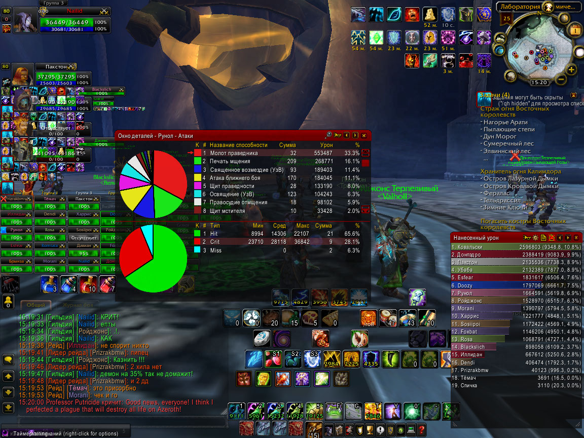 | Только 10% это дамаг босса, то есть урон В танка, и максимум увеличивает входящий урон на 50%, может быть его так разбойники раскачали, маленькими хитростями?). Но на 25 каком-то боссе раскачали танка до 6к дпс только, было 4 рогуя. Очень высокий урон от молота праведника, у меня такой крит, как у него обычная атака. Оффтоп-очень много промахов) На счёт вздутия Чяз прав, я ошибался.