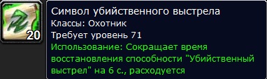 • Улучшенный верный выстрел: 15% вероятность срабатывания от способности «Верный выстрел», но даёт увеличение урона на 15% и снижение затрат маны 20% на следующий «Выстрел химеры», «Чародейский выстрел» или «Прицельный выстрел». Но я стараюсь после срабатывания использовать «Выстрел химеры», так как это даст дополнительный урон.