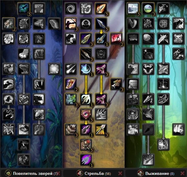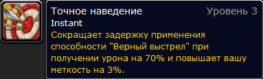Если у вас есть add-on, который показывает ваш рейтинг меткости в процентах на каждом выстреле – это хорошо, так как я взял те таланты, которые дают максимальный урон с моей экипировкой. Но если рейтинг меткости у Вас низкий, то стоит вместо