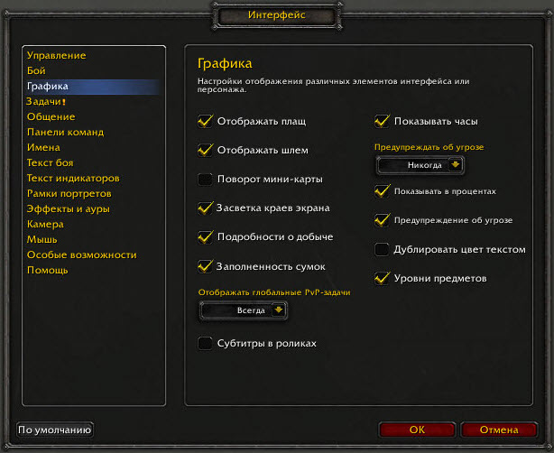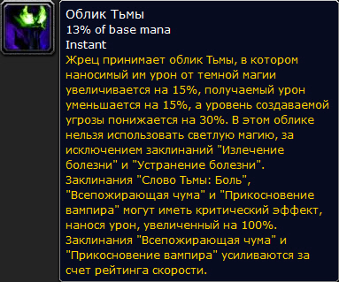 | Очень часто получается так, что когда нас убивают в рейдовой зоне - виной всему танк. А так ли это на самом деле? Может виноваты другие игроки группы? Зачастую так и бывает. Но все же, попробуем разобраться. Я к сожалению не знаю в совершенстве ни один игровой класс World of Warcraft, кроме жрецов. Поэтому раскрою тему именно на примере моего класса ? Почему монстр бежит бить Вас вместо танка? ! Ответ очень прост: поведение монстра определяет глупая программа. Приблизительно в 90% случаев монстр бежит бить игрока с самым высоким уровнем угрозы, в остальных же 10% это скорее всего будут боссы и то не все. В любом случае, в тактиках это можно прочитать. ? От чего зависит уровень угрозы? ! От величины урона и исходящего исцеления. Лучше всего для атакующих контролировать свой уровень угрозы с помощью встроенной функции. Включается эта функция в меню "Интерфейс": 1) Открываем главное меню. 2) Жмем кнопку "Интерфейс". 3) В появившемся окне выбираем раздел "Графика". 4) В секции "Предупреждать об угрозе" в списке выбираем "Всегда". 5) Ниже есть две опции: "Показывать в процентах" и "Предупреждение об угрозе". Первая включит специальный индикатор над общим индикатором цели в котором будет отображаться накопленная угроза. А вторая будет выводить на экран сообщение, что вы сорвали на себя какого-нибудь монстра. Включаем все. В итоге получаем: Ну и наконец добрались до основного - как же снизить свой уровень угрозы? - очень просто! 1. Подождать пока он опустится сам - для этого нужно просто какое-то время не атаковать монстра. Постепенно уровень угрозы снизится и тогда можно будет продолжить. Не пытайтесь нанести больше всех урона, если Вы не умеете контролировать свой уровень угрозы. Если босс, например, один раз Вас ударит - Вы скорее всего не выживете. Трупом Вы урона совсем не нанесете, еще и стыдно будет, да и танк опять окажется всему виной. 2. Танк постоянно использует специальные способности, которые сильно повысят его уровень угрозы, но большинство из них действуют только на одну цель, иначе играть танком не интересно было бы. Что нужно делать остальным? Бить цель танка. Тут многое зависит и от лидера группы. Я например, когда лидер, всегда стараюсь ставить метку на цель, которую нужно бить остальным. В большинстве случаев это монстр, которого взял в цель танк. Чтобы делать это быстро - лучше всего выставить для метки (я использую красный крестик) комбинацию клавиш. Я выбрал Alt+ё. Всегда под рукой Танка нужно просто взять в фокус и разместить окошко где-нибудь на хорошо видной части экрана, а потом просто вовремя ставить метку на следующую цель. Можно конечно сделать для этого специальный макрос, который при нажатии будет ставить метку на цель игрока в фокусе, но не будем загружать себе мозг. 3. Таланты и способности. За счет талантов можно ощутимо снизить создаваемую угрозу. Посмотрим какие есть таланты для снижения угрозы у жреца: Молчаливая решимость - значительно снизит уровень угрозы для лекаря. Жрецам тьмы брать не стоит. Единение с Тьмой - снизит на 25% уровень угрозы от атакующих заклинаний. Логично брать только жрецами тьмы. Сокрытые тени - если Вы выбрали основной ветку тьмы - берите, потом расскажу зачем. Облик Тьмы - снижает всю создаваемую угрозу на 30%. Этот талант нужно брать только для жрецов в роли атакующих. В общем-то по талантам снижающим угрозу - это все. Тепе