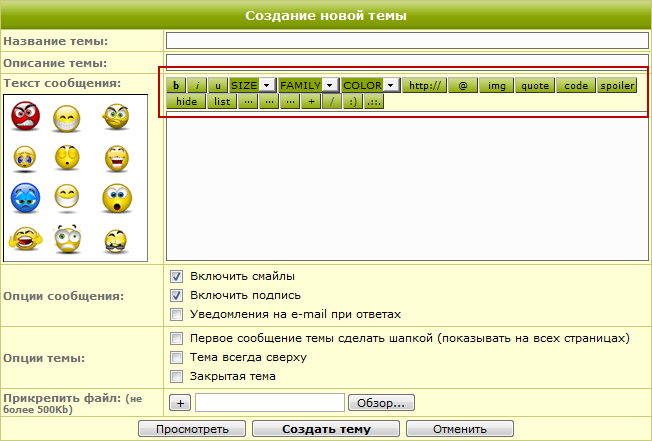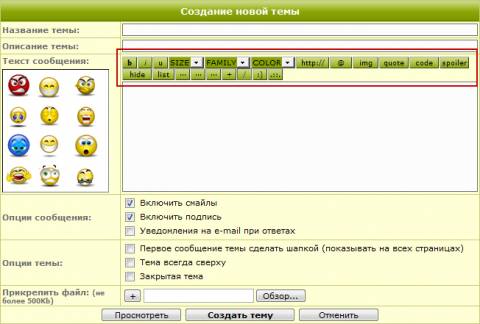 Его нужно вставить в ваше сообщение в месте, куда требуется добавить изображение. После того как вы закончили писать новую тему можно просмотреть её с помощью соответствующей кнопки или завершить её создание нажав кнопку "Создать тему".