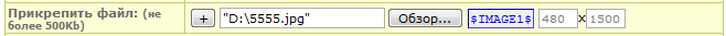 Для добавки файла укажите его адрес с помощью кнопки обзор. Если вы выберете изображение и система распознает его формат - рядом появится окошко с кодом для вставки: