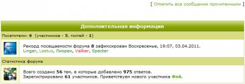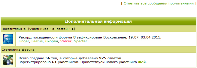 6) RSS - каналы RSS для отслеживания свежих новостей с нашего форума. Теперь опустимся в самый низ форума. С правой стороны можно увидеть надпись "Отметить все сообщения прочитанными" - нажав на неё все новые сообщения оставленные пользователями с момента вашего последнего просмотра отобразятся как уже прочитанные.