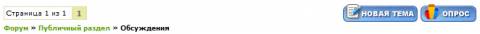 В шапке вы увидите как всегда главное меню форума. Ниже будет отображаться меню раздела. С левой стороны будет указано количество страниц раздела и его адрес в структуре форума. С правой стороны вы увидите две кнопки с помощью которых создаются новые темы.